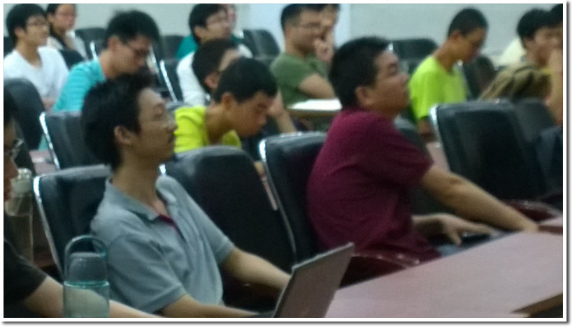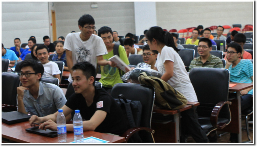 下午2时许,活动还未开始,同学们就已经陆续进入会场西活学术报告厅。我们向参加活动的同学发放了 Linux 系统体验光盘、笔记本、贴纸等精美纪念品。同学们对于本次活动表现出了极大兴趣,不断有同学向工作人员了解演讲内容和活动流程详情。甚至有来自合肥其他兄弟院校的同学,也慕名来到科大参加本次活动。